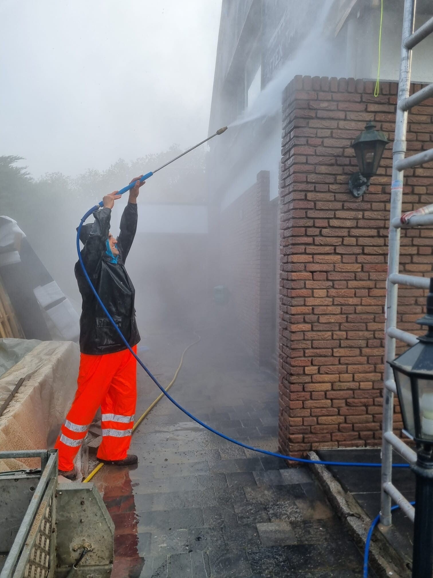 Het reinigen van gevels verwijdert vuil, algen en aanslag om de uitstraling en levensduur van de muur te verbeteren.